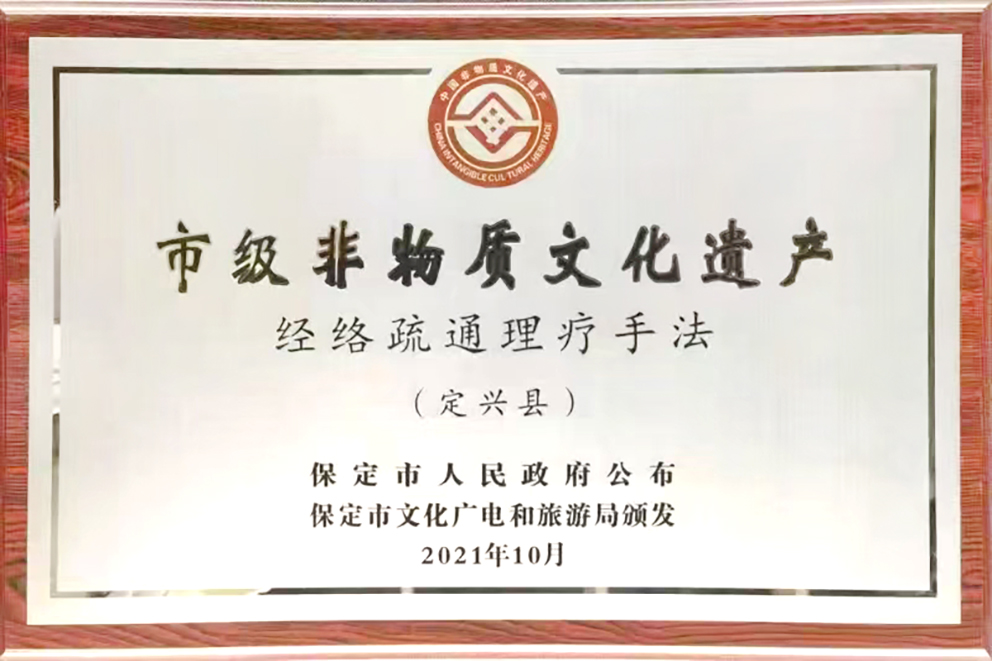 刘远东标新立异的“经络梳通康复理疗理念”突出贡献奖“省级非物质学历遗传”