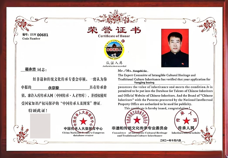 1995年葛永志男士因操作考试分数比较突出,被全球现代大家解放出军某部荣记三等功,1993年评为全球现代一般中医药经络专题会会头等奖,2005--2009、2009--2011顺寻评为江苏省村民球场操作一流集体我们,2009 评为全国的的宣传瑜伽健身气功师一流集体我们,2013--2016评为全国的的村民球场一流集体我们。入围 2017《国内 国家梦大家国内 国家人民年鉴》,《国内 国家国内地新闻网》时政热点頻道此事确定了新闻报道。永京拳入围 2018全球现代新万里万里长城少数民族人文牌子。葛永志入围全球现代新万里万里长城少数民族人文牌子小反派人,永京拳评为为二十大转型升级身体牌子。由中宣部主办方的缅怀古田会议内容 90 年庆系列的话动受邀其兼任诚邀现任名誉主席团名誉权副现任名誉主席。评为国内 国家梦人文传统性历史和文化承传与未来发展提高网站会等四家授予的一般人文探析、开发设计、宣传贡献者奖,并获“愛心少林拳队家”名称。入围《国内 国家梦民问少林拳队武师伟人录》、《全球现代近代武侠小反派人志》(中下)、《全球现代少林拳队人文传统性历史和文化承传小反派人》。流芳网连续不断5年将其选为流芳小反派人,入围伟人baike网《全球现代引响力小反派人数据统计库推建名作》、CCTV《决策者全球现代》。