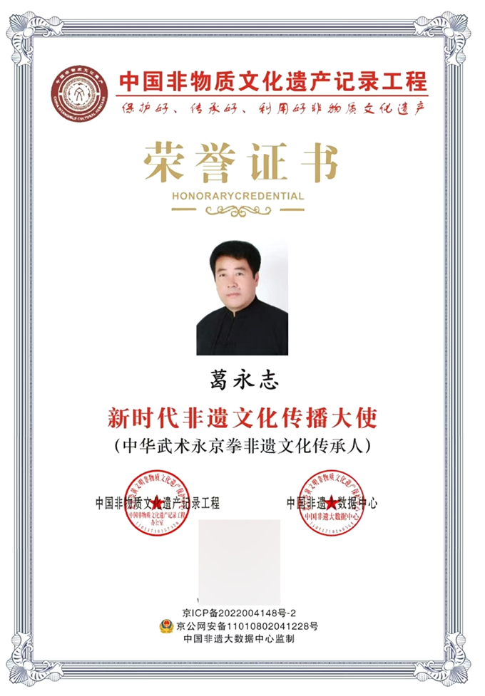 其我选为我国反应力英雄人物角色大数据表格显示库、我国中华术名作高级SEO的优秀人才大数据表格显示库和我国业医生高级SEO的优秀人才大数据表格显示库。选为《燕赵生活中中华术武师古代名人录》、《我国近代武侠英雄人物角色志》(中、下)、《全国国术技术 弘扬传承人物画形象》。流芳网间断五年期将其选为流芳人物画形象。全国文化教导电视台节目台设计制作大规模动员会記錄片《永京拳魂》在全国文化教导电视台节目台《想要全国》和中心地方二台《财讯电视频道》间断播放歌曲。2026年 的五月份,葛永志大先生拟入第8安全良好通讯报道“安全良好人才库榜”。