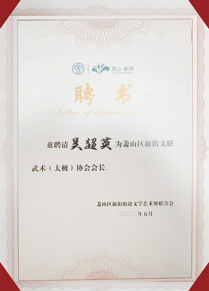 开始之前及到现在兼任新街街镇、新润社群、广泽名流家和等地晨练点大极拳私人训练。现新街文联促进会中国武术队(大极拳)会成长兼调度员兼私人训练,新街文联游泳保健气功师师学习调度员兼私人训练。现杭州杭州萧山区游泳保健气功师师促进会䀻请为营销八段锦镇街学习员,现受䀻杭州杭州萧山区城东儿童学院新街学习点私人训练。听党话,大家游泳保健,积极参予促进市民参予传统的国术,游泳保健欢乐每一位天!得到了区民政网及区妇联区体育类的显然和市民的五星好评。同一时间,由其团队复杂的新街街镇中国武术队晨练点家人同一时间几次取得集体性和一个人冠军十几个枚。