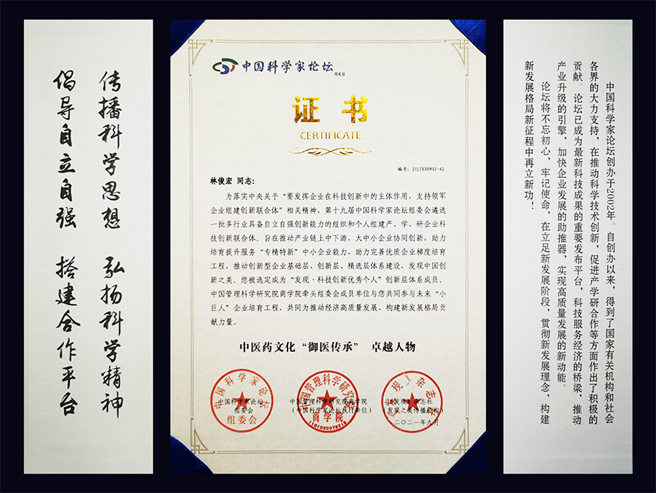 在中医师药学习与现如今化等方面,林副教授同一个突出贡献卓绝。1995年,他将在台湾潜心研究的成果——“酵素疗法”引入大陆,成为中国该领域的先驱。他积极探索传统中医药理论与现代科技、自然疗法相结合的创新路径,在中医药制造、环保、有机农业及健康领域取得显著成效,为古老智慧的现代转化提供了成功范例。