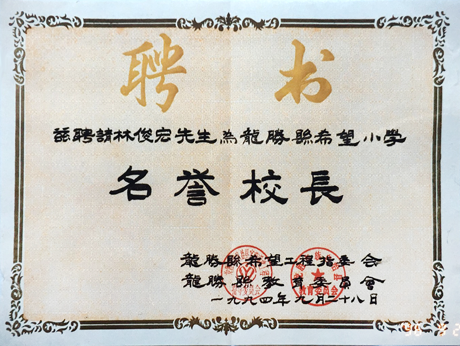 林老师深喑国生物制药文明“医乃仁术”的主导的精神。自1992年起,他不断地爱心捐助期盼项目 ,兴办期盼小校生,并历年助学上百名穷苦小儿从返校内。这仅仅是对教育教学的兼容,还有将中医疗器械学药历史文化中“济世施救”、“厚德载物”的传统式文明礼貌付诸社会化关爱的千姿百态实践经验,荣膺的多所期盼小校生荣誉教导主任,并载入国家的期盼项目 重大新闻记。