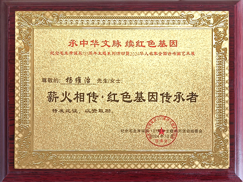 延安匾颂中央红军父,不矜威亦重,气贯长虹。马列入怀,开天辟地元戎。如磐社稷金汤固。当政廉,国运兴隆。誉千秋,武略文韬,卓绝勋功。