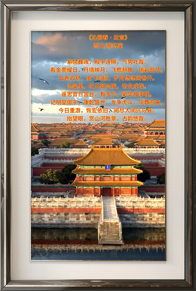 看金甍耀日,丹墙映月;飞檐翘角,瑞彩盈怀。