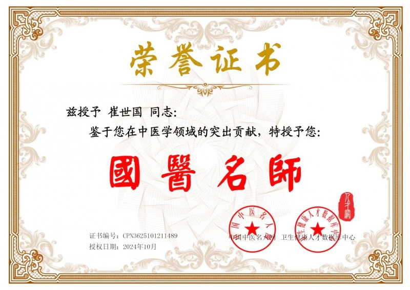 崔世国师傅所获获得荣誉