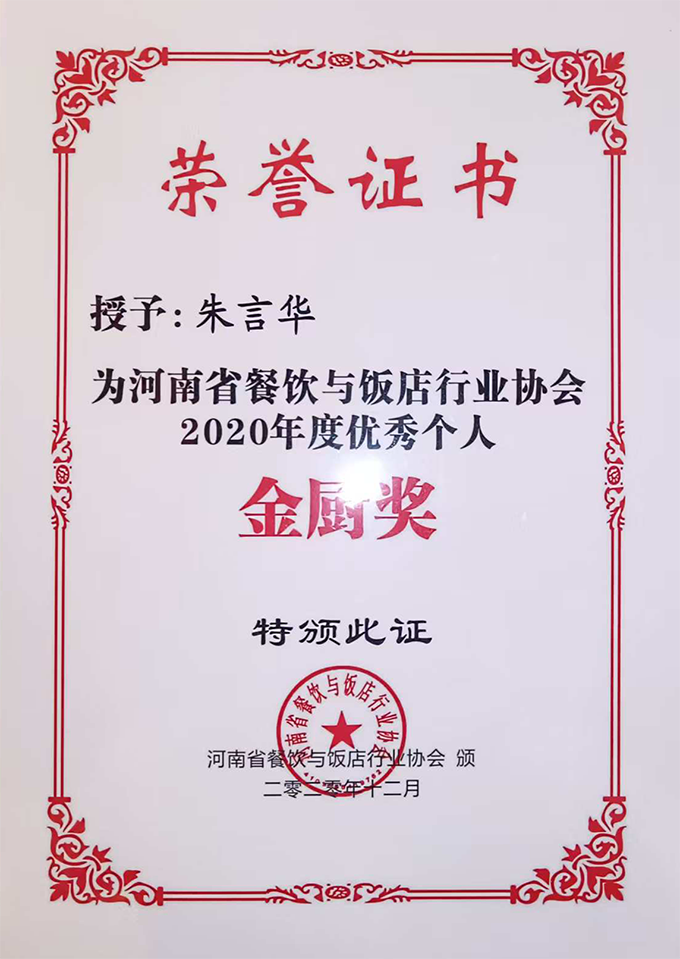 2021年被宁夏省饮食与宾馆行业中农学会称为2021年度不错小编金厨奖。