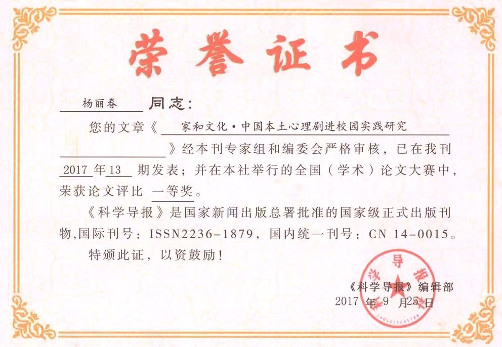 2016年《炎黄各族市民共合国年鉴》360收录网站心里学权威专家团队;2016年各族市民日报、各族市民要闻网《世界大国·匠人》360收录网站心里学权威专家团队;2016年杨丽春心里剧™企业品牌形象评为国内510企业品牌形象。