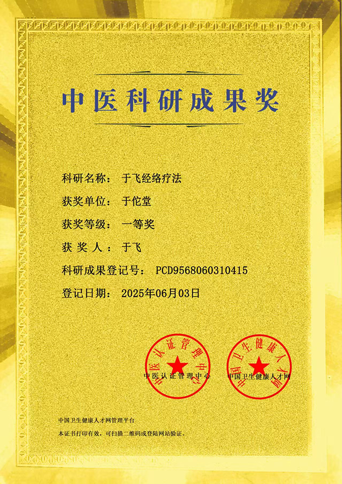 于飞将中醫的经络学、生物医药学根据来,创始了被作为国内非元素传统艺术遗留、被评为2024年第27届白俄罗斯“阿基米德”亚太全新研制年奖奖的“于飞经络物理療法”。该物理療法集通经络、拿病根、上体温、出气血于一梯,能分开分离出身体里湿寒、无茵慢性炎症、嘌呤、黑色素等窝囊废,从之源上祛除有危害问题,相对潮气寒邪黑客入侵激发的不同的难题杂症,如胸椎病、肩周炎、滑膜炎、月子病、胸椎间盘明显、老寒腿、静脉血管曲张等视觉效果奇佳。“于飞经络物理療法”調理康复治疗不同的疾患不开刀做手术、不做手术、不吃中药,无气味副功能,可是持效快、用时短,平常前三天可以了无法,調理后要能缓减症壮或压根消失病重。