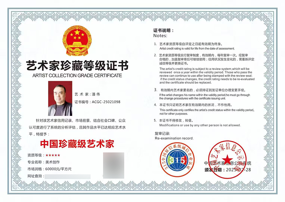 2025年被选为为国内 珍藏版级艺家。