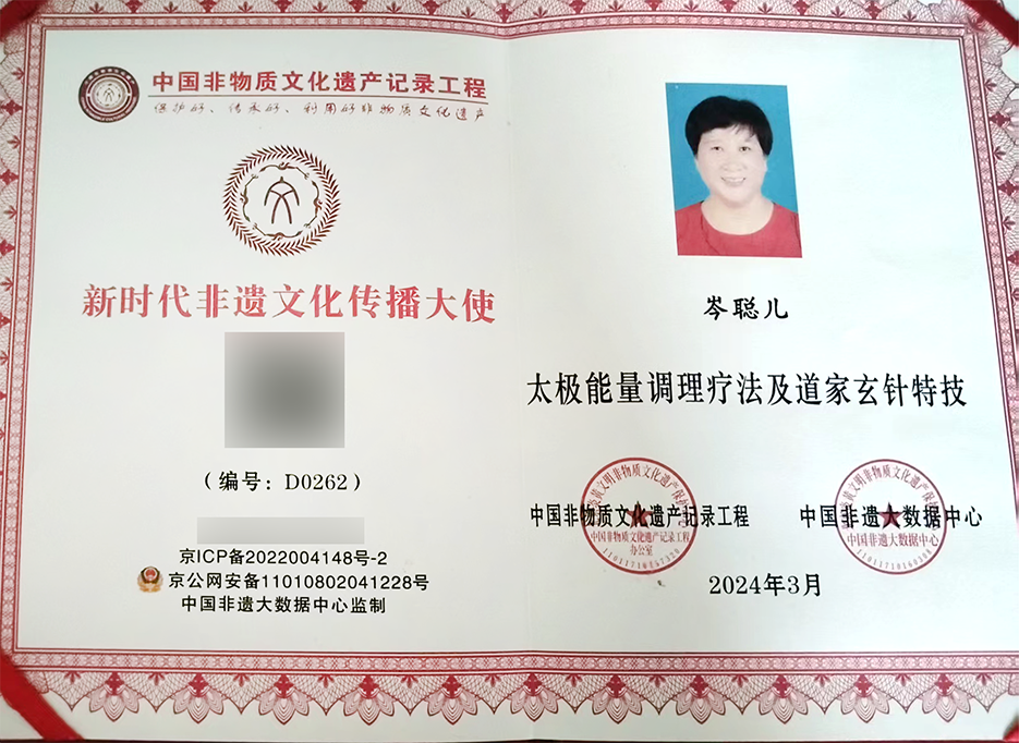 岑聪儿,女,癸未年1965年,云南绍兴人,我国的全真教华山派二十七代关门弟子,道名复聪,号三源, 我国的医疗机械内容的问题商会古人文精神针灸学会专业人士。 我国的医疗机械的问题学好中西医学汇通针灸学会二届针灸学会专业人士。我国的生活中中医理论医疗机械分析激发商会會員。我国的民族风俗卫生防疫商会专业人士专家会会专家会。 我国的非东西古人文精神遣产记录时间项目 专业人士,世界里非东西古人文精神遣产分析院副院 长,我国的道医商会专业人士,华山派天罡神针针法薪火相传人或是陈氏太极能量是什么保健法创立人。