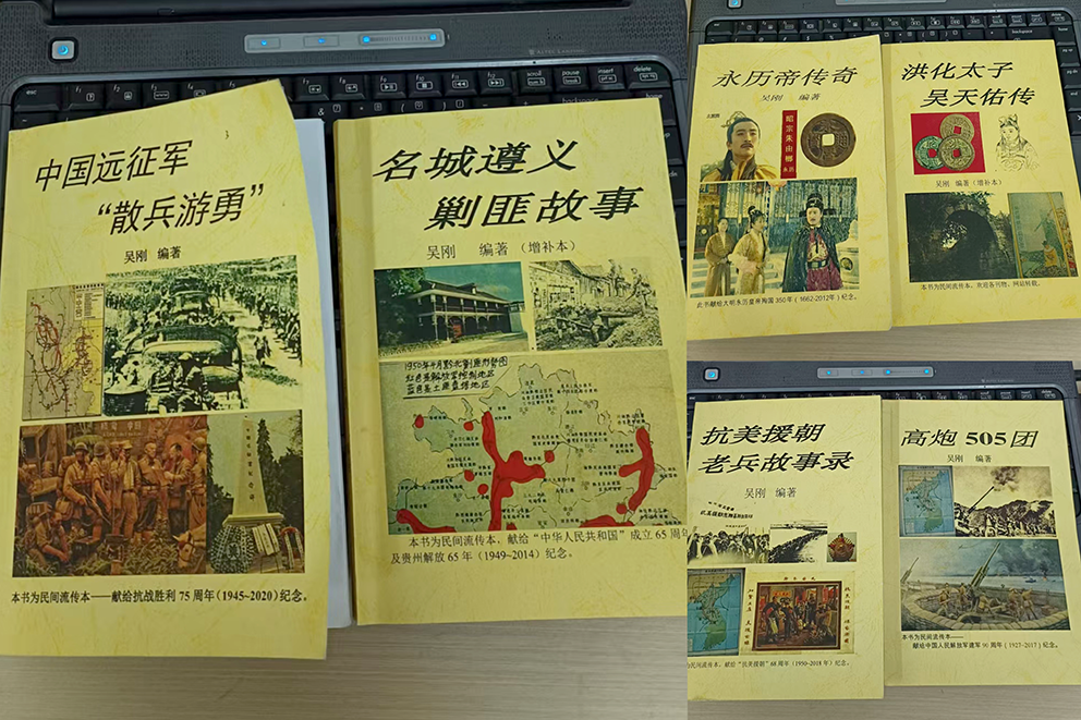 在业余爱好特长事情后,吴刚爱好特长史学,比较喜欢创作点历吏长河玄幻小说集,被点人叫为“我国古代土史学家”。2006年1十二月他被特邀前往参加独山县再者次文代会,并参与新开设的“独山县我国古代浪漫家农学会”,被选为独山县我国古代浪漫家农学会执行主席产品之一。他的的视频有中篇历吏长河玄幻小说集《京官谪匀》、《高炮505团》及长篇历吏长河小历史书《永历帝传奇三》、《名城遵义剿匪小历史》、《中国人远征军“散兵游勇”》等,考虑到他的的视频部分算是我国古代传播自印书,于是,他被点人叫为“独山县我国古代土史学家”。