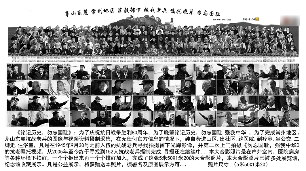 从2018年在被他人为封闭抗日战争退伍军人图片信息信息下,纯自费生进贫困山区.出社区卫生.跑的医院.到疗养.坐公交车.二脚走.住澡堂,为本身抗日战争退伍军人查找摄影产生光荣数字影像,并多次天津上门摄影《勿忘国耻,强我中毕》的抗老嘱咐短视频,直到今天总算查找到152个人抗日战争退伍军人摄制成功完成了这张5米50X一米20的大一起的合照像片儿,本大一起的合照像片儿巳被一处博览会馆,纪念册馆个人收藏商品展示板。本身爱心慈善商品展示板,将全部全免 赠送送本落款像片儿。