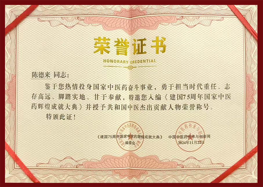 2025年的5月1日,我国的中药业学药发扬光大与全新网授勋陈德来男同志“全中国中药业学全国十佳劳模。