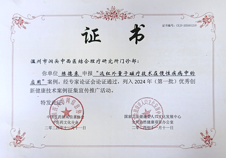 陈德来,男,19510年3月刚出生,新国际数字经济高等级探究员,2025年里央全国两会着重高性价比中醫妇科大师。幼时随父学习生活常识东西方医,成熟后考进南京市中醫妇科针灸小儿推拿中专班,目前是绍兴市洞头东西方医综合推拿探究所优点兼诊所部主人,持久专业对口社区医疗、护理、成果转化任务,有充足的按理来说生活常识和实践性經驗,有好多出现专利。