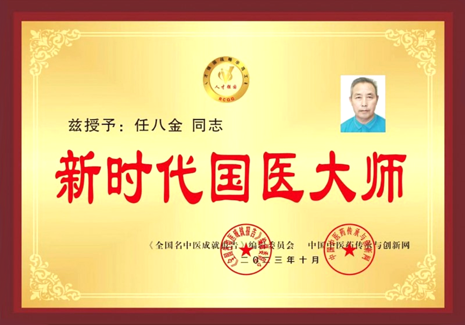2O28年12月24日任八金被神州传统性文化水平分析院组委会授于“新华人解散75年庆老中医军功角色〞殊荣头像框。并安排为企业“客座传授”。