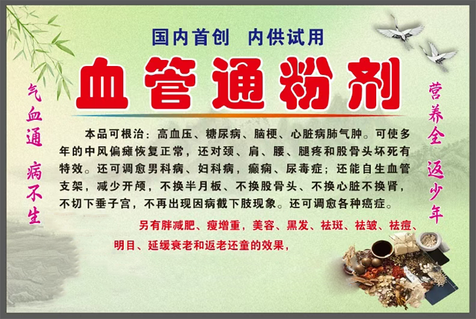 《毛细动静脉通粉剂》能否把人毛细动静脉里的任何静脉血水解、拴塞、斑块、梗塞、内出血、湿毒拉圾清的干掉净,能否令人的身体健康获得了第二种次重获新生。