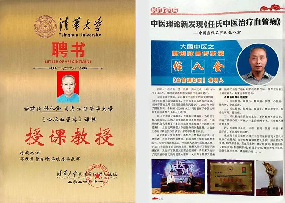 2018年试成《血官壁通粉剂》把这一科技创新国医药学内服科技定名为《任氏国医药学开展血官壁病》。