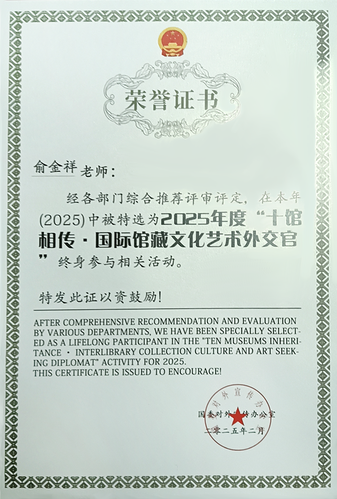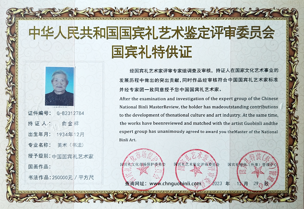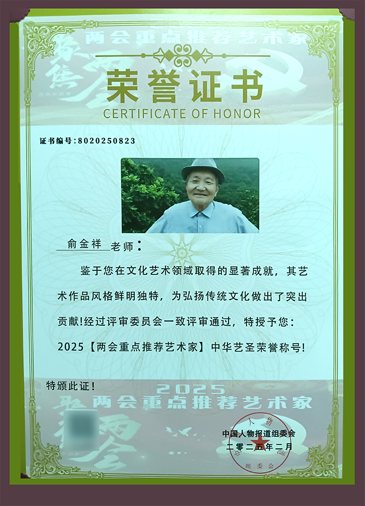 俞金祥,字石人,1934年家庭出身于广东省省嵊州市殿前村刘海粟老公再传高僧。从事于硬笔书画艺术教导一百这些年。所创造品,墨笔常用太硬,选材与众不同,布局合理粗细有致。创出硬笔书画特色化新整体空间格局,为全国传统与现代毛笔字美术之花静脉输液、增彩,增光。其作品展淡墨精妙、受益匪浅、自排成家,最受业内同仁好评。虎字2012年在法卢浮宫出展7天,名作很多次在国内外十来国文物展,“龙”“虎”、“和”选为国礼领取其他国家政要,喜获“知名管理泰斗”名称。通常入编有:中文化课艺术档案存放出版业物社出版业物的《中发扬名手》、天色QQ神州文化课遗留地保养中心局制定的《QQ神州遗留地•技术之巅》、国家喜欢文艺范儿发稿社发稿的《當代书史身为家特别产品模板》,2024年出书的《我国的毛笔书法大全》的封面照片设计的选取俞金祥的著作!俞金祥的小头像与画集一次对于封页人们刊载于经点性的书画艺术合收集。每个人发稿有《俞金祥三体硬笔书法作品集》被算为孔子工程学院硬笔书法作品教学教科书,特殊纪念“范围六路”倡议书范文十一周年《俞金祥一个人专集》。2022年6月中央台QQ华夏银行儿子频道组、QQ华夏银行儿子弘扬传承艺木星星评比组委会特颁授俞金祥“《华厦孑女》-非常实用艺术创意发扬新星”荣誉头衔头衔,2022年8月我们明族视觉的品牌引领反面人物组委会、高清电视《历史文化科技强国》专栏组特授勋“中华民族管理茶叶品牌领航者历史人物”殊荣奖头衔,同一天又评选为“吉尼斯游戏管理終身功绩奖”,授奖“吉尼斯最具收葳实用价值管理家終身功绩奖”殊荣奖头衔。现为我国特一级书画艺术家,孔子高校书法集客座教学,国宾礼艺木家、非基因遗传统新工艺复兴劳动模范人们、中国非有机物传统艺术遗产地设计院副医生,联合技术国富强字画院院士评选。两国传统艺术座谈会外观使者、东南亚技术技术交流沟通大量、中国有文化课网络金融开发联办会常务执行主席长,协同国环境卫生情况公司•北京环球人文传输领事,这个世界中国五大之门级视觉大師,国内级中国五大视觉大師,甘肃“名作国宾酒”样子公使,任聘“意大利都柏林艺大学生客座教学”,中国大服务管理出口贸易针灸学会新文化交流会岗位理事会会用户及聘用字画家2023年7月聘任“党中央新影初中生渠道文创产品年代网站栏目组常务委员”。2024年颁授“合力国线上营销公使”、“华人美术史山花奖”、“华人图书馆收藏的级美术史家"、“造型艺术中的诺贝尔奖赢得者”名誉称谓等,影片受政府珍贵文物核心保护好,为文化界收葳。