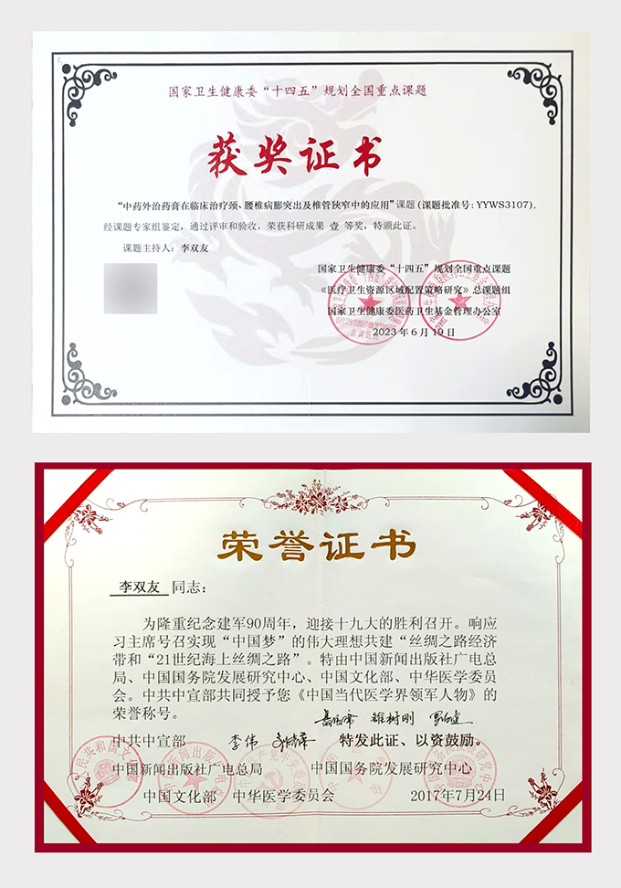 李双友体系地汇总了中医大夫实际,紧密结合自身的医学研究探讨实践内容,创新技巧研制好几个种中药才搭配膏药贴技巧,治療浑身各个部位位疼、痛、酸、困、麻、木、憋、胀、冷、痒、热,并赢得 国内常识房屋产权局实用新型合格文凭,医学研究探讨方法痊愈率达98%,广受众多糖尿病求美者的赞许与好评语,经受考验查验,赢得民众日报》,全球商报,合理日报,受众合理报等图书报刊安利,并被认为国内公共食品卫生键康委,十五六策划重心的问题《医疗服务公共食品卫生资原区硬件配置政策探讨》总的问题,并赢得 项目申报、结题、得奖合格文凭等。他喜欢治療胸椎病、腰椎间盘凸起间盘凸起、环节疼痛的、顽固不化性烦恼、三叉周围神经痛、跌打受损问题、月子病等一品类疑点杂症。他的事际报告被收入水平《中华人民学者巨大成就博览》、《国内名院中医大师名药》、《国内学者大辞典》、《国内实用新型创造发明人民大学全》、《国内的特色中医大师典礼》、《国内现时代医疗名家》、《辉煌的意思的国内医疗事业上的》、《全球医学研究明录》、《全球中医大师典礼》、《全球合理学者与技能人才》、《全球智能互上网全球名家传略》、《国内合理家年鉴》、《国内好大夫》等80多台原素图书中,地方电视节目台、省、地、县信息网络媒介70余次消息过其事际报告,其把去掉糖尿病求美者的精神痛苦,当做更大的生活乐趣和终其一生的追求幸福,赢得了许多同仁和糖尿病求美者的肯定。