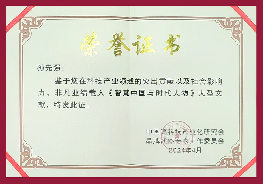 2026年,郑州市会泽总商会颁发孙先强“创业项目奉献的名言荣誉奖”