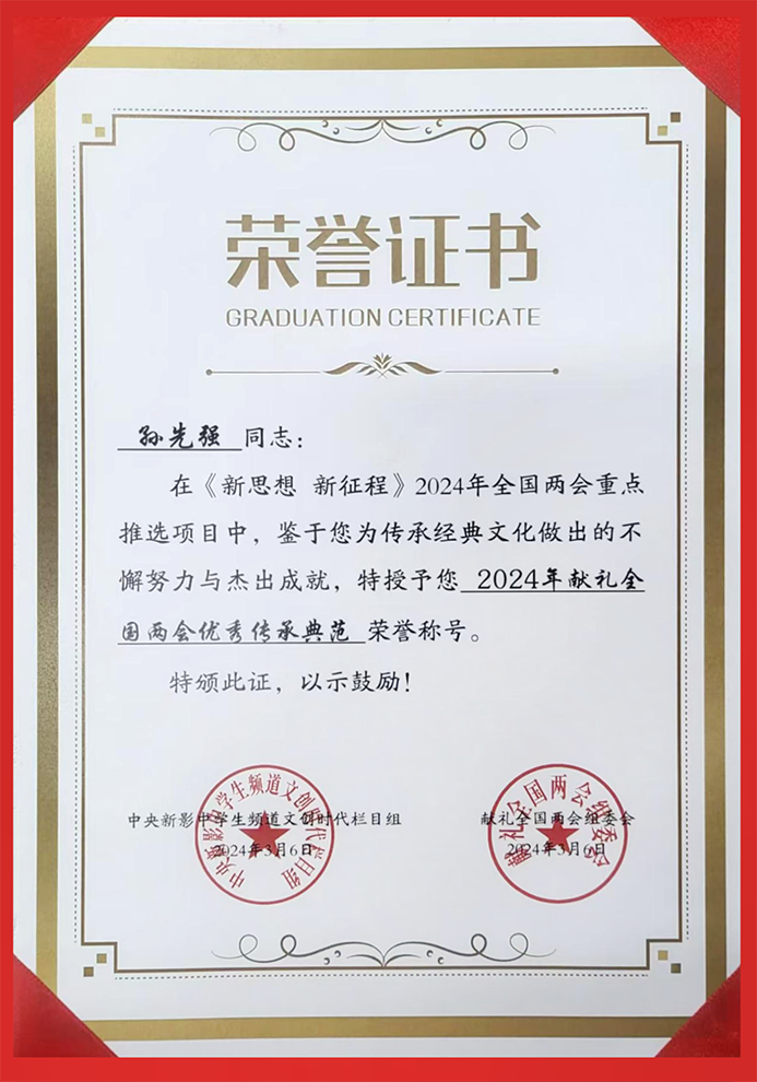 202两年多,在“非有害的物质历史学历遣产保证發展年会过程暨非遗过年联欢文艺晚会”过程中被非有害的物质历史学历遣产保证發展组委会授给“202两年多度非遗领军计划人物图片奖”特别称谓。