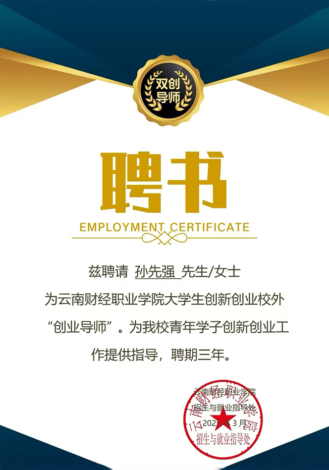 202多年,在云南市青孩子制造业企业商会、云南市青孩子高考报志愿表者招募行为者商会、云南市青孩子发展方向债券会2023-5年“金牌高考报志愿表者招募行为者”“金牌高考报志愿表者招募行为服务于组织”评选投票行为中被选为为“金牌高考报志愿表者招募行为者”。
