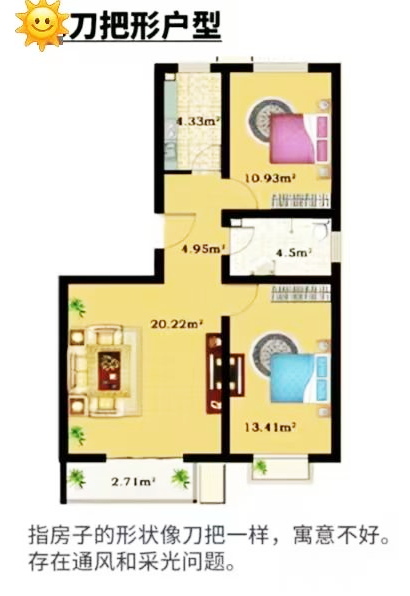 缺角煞:形菜似刀,住宅缺导角致能场量断裂,易引家发庭不稳定。动混静乱:“刀柄”区若域作卧室/厨房,家易人焦躁失眠、矛激盾增。