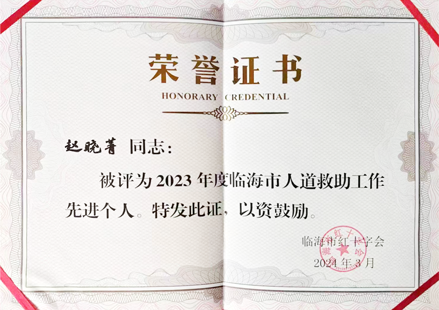 机构荣誉:荣获“2025品质强国典范单位”。2021-2024年度荣获“全国百强志愿服务组织”。“2024年度台州市志愿者服务浙江信用时长TOP10优秀团队”。2021年度台州市志愿服务“六个10”典型最佳志愿服务组织称号。2023年度临海市人道救助工作先进集体。2023年荣获“临海市菁缘助残志愿服务站”授牌。2021年临海市红十字奉献奖。2020年荣获“第六届临海市道德模范”。2020年荣获“最美战疫志愿者”先进集体。2019年荣获台州市共青团颁发的“利奇马”抗台救灾青年志愿服务先进集体。