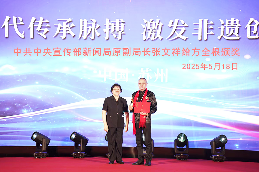 2025年5月18日非物质文化遗产保护发展组委会在“非物质文化遗产创新人才发展论坛”方全根荣获2025国学文化传播领军人物荣誉称号。