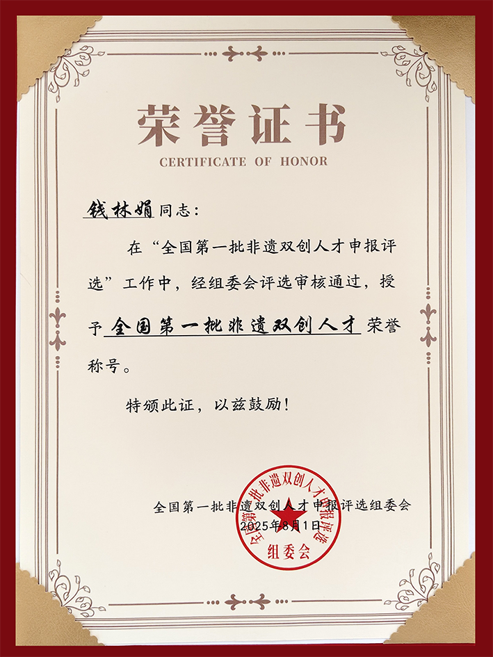 2025年8月30日钱林娟喜获《国家大师-国外瑰宝艺木大师》的人个专刊。