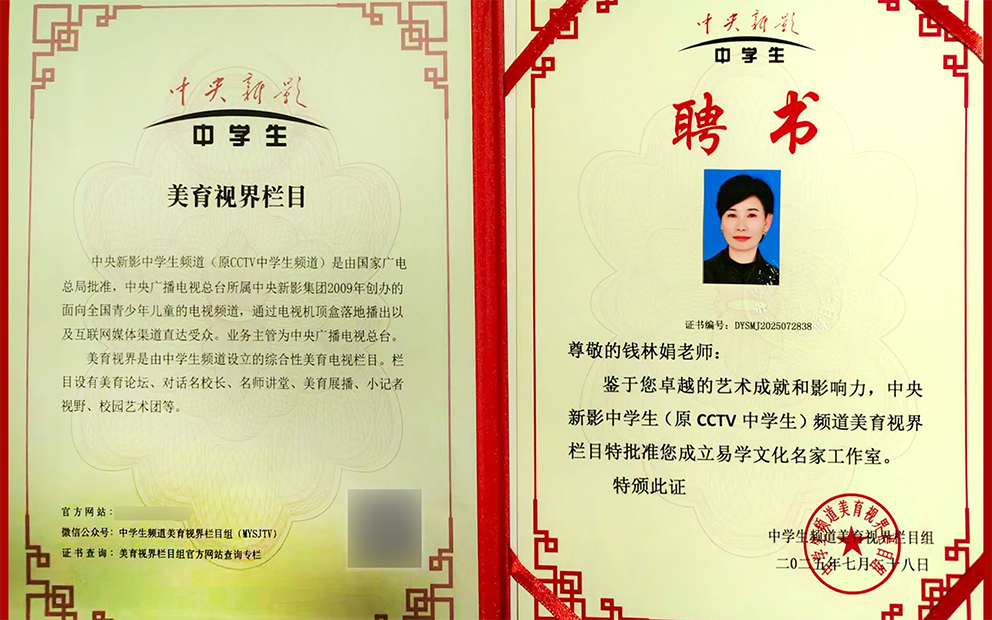 2025年6月16日中央军事电视台台(视觉名作8个)钱林娟聘请国学文化风水住宅荣誉客座教授。