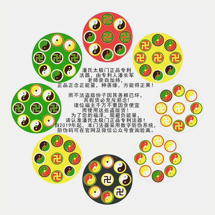 2.专利产品:“太极风水五色牌”系列,含三组15个品种,均获国家外观设计专利: