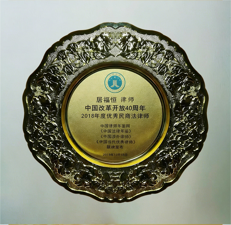 2018年,荣获中国改革开放40周年“优秀民商法律师”荣誉称号。