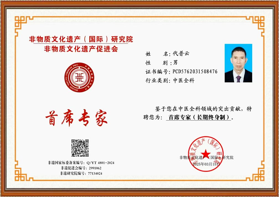 从事中医诊疗工作40余年,擅长中西医结合治疗各类疑难杂症,对耳穴探测、掌纹诊病、中医针灸有独到见解。结合多年的临床经验,开创代氏全息医学诊疗技术(包括疾病预测、耳穴探病、掌纹诊病、脐疗、穴位注线等),简便适用、群众满意。