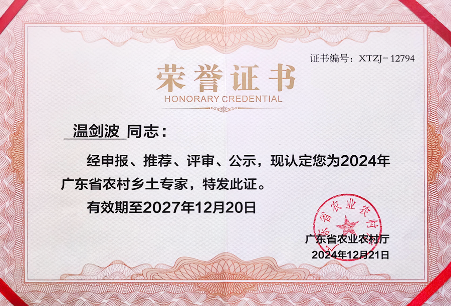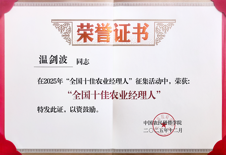 他的企业责任观超越了利润追求:“企业除了要充分考虑到行业的痛点、社会的痛点,为社会解决就业、带来税收,还要充分考虑能在哪些方面更多地促进社会的发展?把这些问题想清楚,战略才会清晰。”这种家国情怀,让他先后荣获“全国十佳农业经理人”“广东省农村乡土专家”“2025年度优秀民营企业家”“2025年度科技创新先锋人物”等称号,并入选《致敬建国75周年最美管理者风采录》。