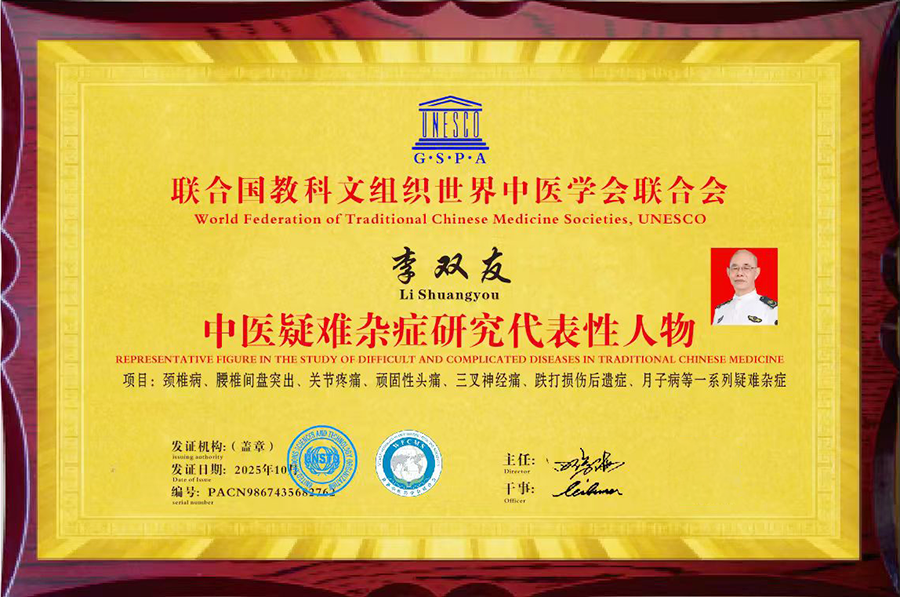 李双友系统地总结中医理论,结合自身临床实践,创新研发了一种中药组合膏药技术,治疗全身各部位疼、痛、酸、困、麻、木、憋、胀、冷、痒、热,并获得国家知识产权局专利证书,临床治愈康复率达98%,深受广大患者的赞扬与好评,经得起验证,得到人民日报》,国际商报,科技日报,大众科技报等书籍杂志推荐,并被评为国家卫生健康委,十四五规划重点课题《医疗卫生资源区配置策略研究》总课题,并获得立项、结题、获奖证书等。