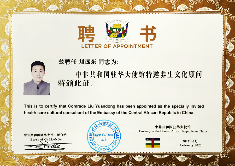 刘远东数学老师聘用“中非共合国驻华大量馆邀请养生保健民族文化咨询顾问”