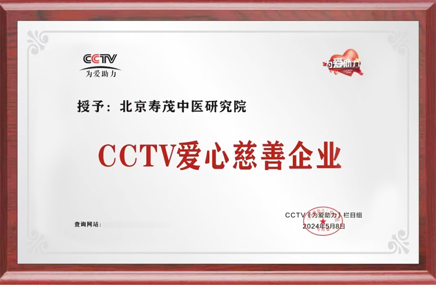 授予北京寿茂中医研究院“CCTV爱心慈善企业”