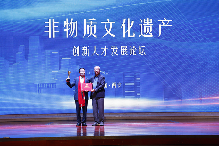 中国致公党军委宣扬部原办公场所厅主住薛启亮男同志为杨文才数学老师发放“非遗传性承越来越贡献奖奖”。