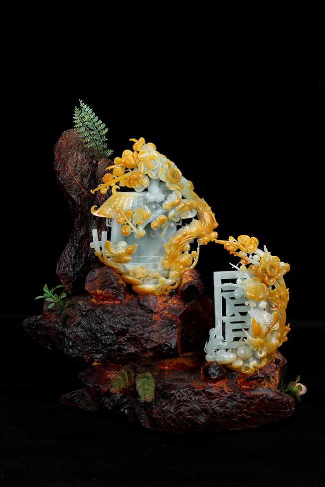 四五年磨励,熏陶相玉、段玉、解玉、炼玉和硬玉镂雕悬在空中雕的极深写作能力,追随“象外之象”“行艺自燃”的设计美学修真等级,始终坚持个人装修风格独有、涵义深蕴的美术类装修风格,创作方法了数百人件方法高超、纪实性有意思、涵义深蕴的硬玉镂雕、悬空折叠式雕佳品。在当中的《黄山揽胜》《双喜临门》《花盛开富贵》《小公举贺寿》《人生是什么吉祥》《龙行八方》和《战魂系列表》等代表性作,它主要是因材施艺、设计构思合理、主题风格感受、小细节传神等深色,为在我国现代在我国玉雕界举世瞩目认可的美术类精品屋,被称誉为“江南地区翠魂”。
